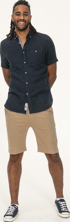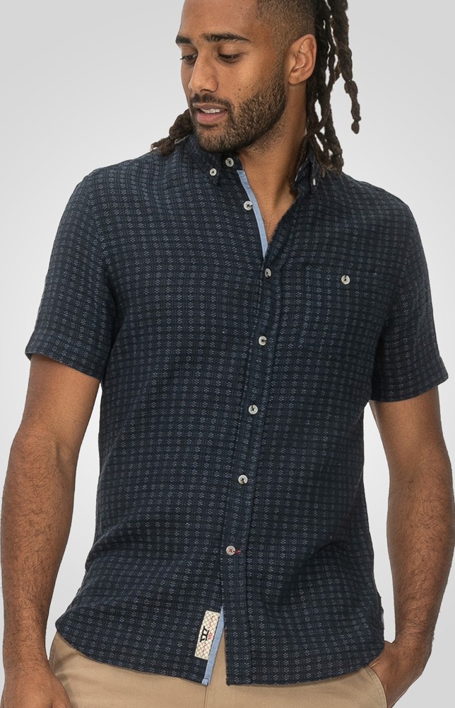 Mérettáblázat - D555 Pontefract Jacquard Linen Mix Short Sleeve Shirt With Button Down Navy
