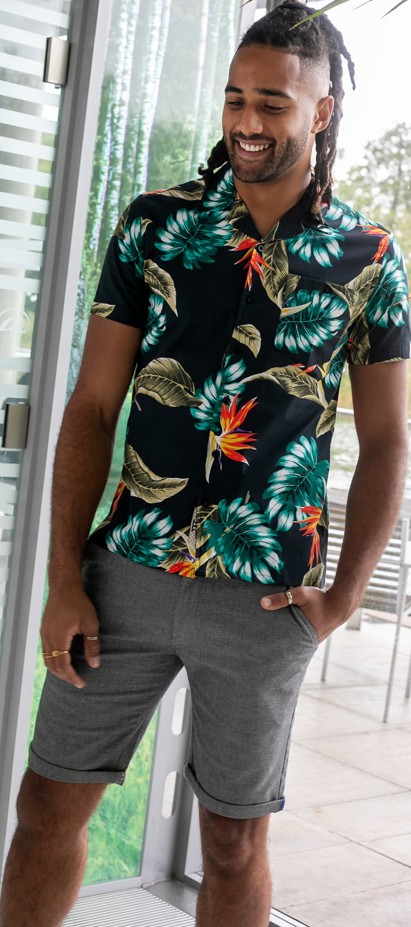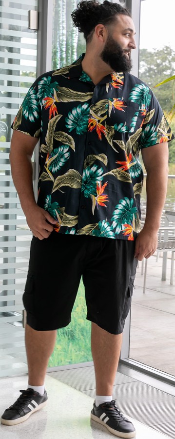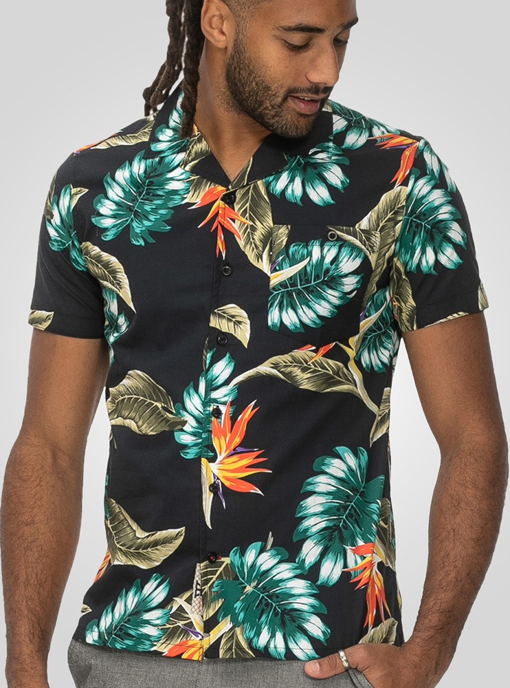 Mérettáblázat - D555 Selby Hawaiian AOP Short Sleeve Revere Collar Shirt Black