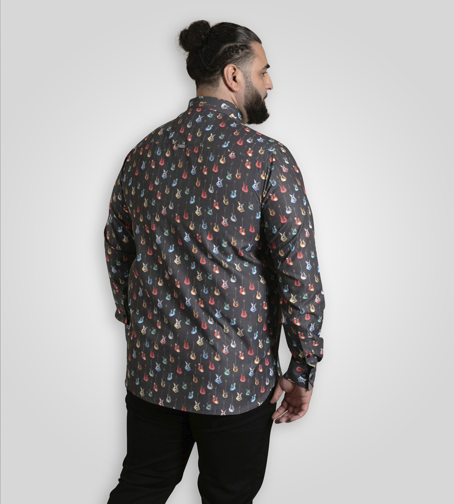 Mérettáblázat - D555 Wakefield Long Sleeve AOP Guitar Printed Shirt Grey