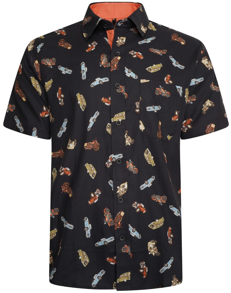 Mérettáblázat - Kam Jeans 6046 Vintage Car Digital Print Shirt Black
