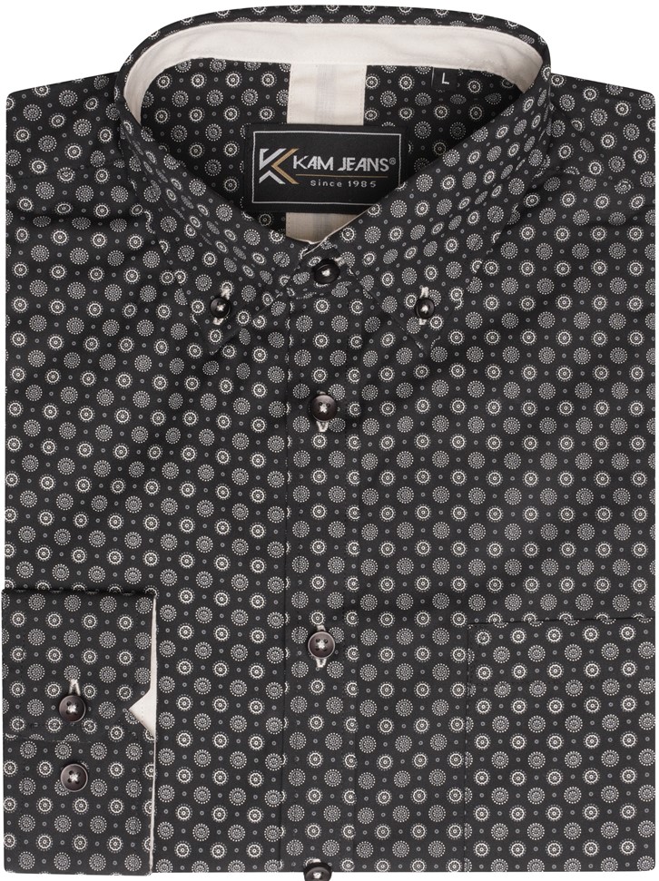 Mérettáblázat - Kam Jeans 6296 Long Sleeve All Over Geo Print Shirt Black