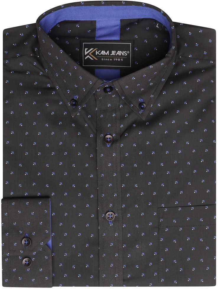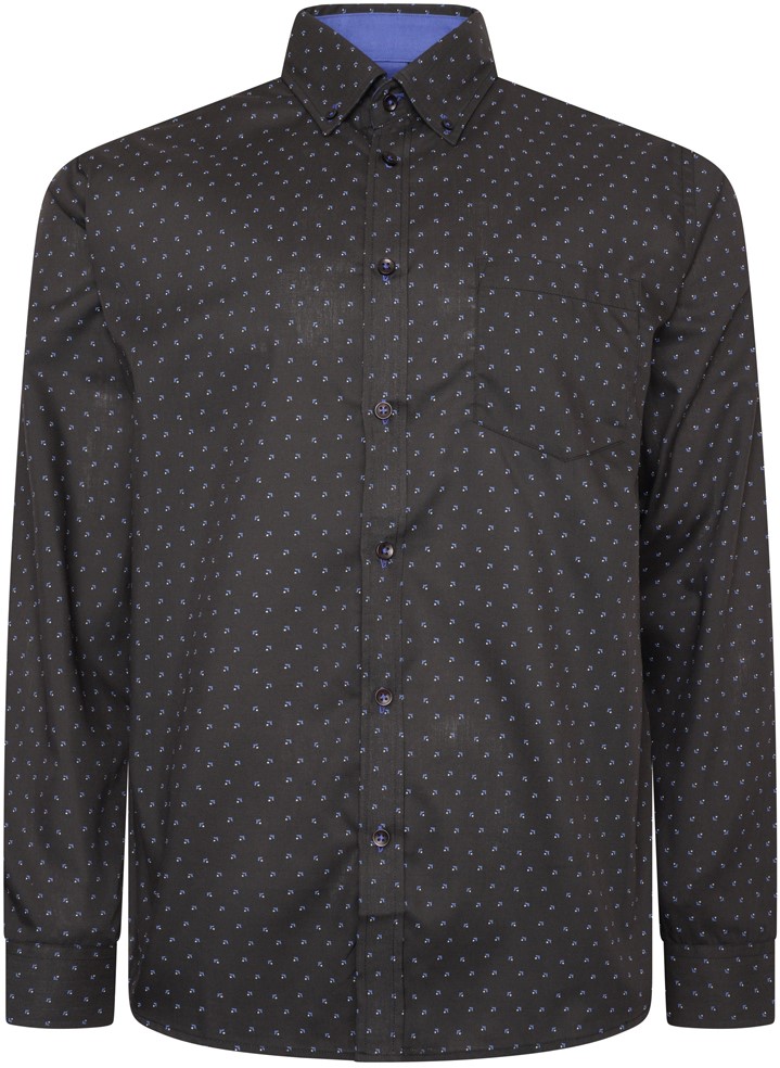 Mérettáblázat - Kam Jeans 6297 Long Sleeve All Over Blue Dobby Print Shirt Black