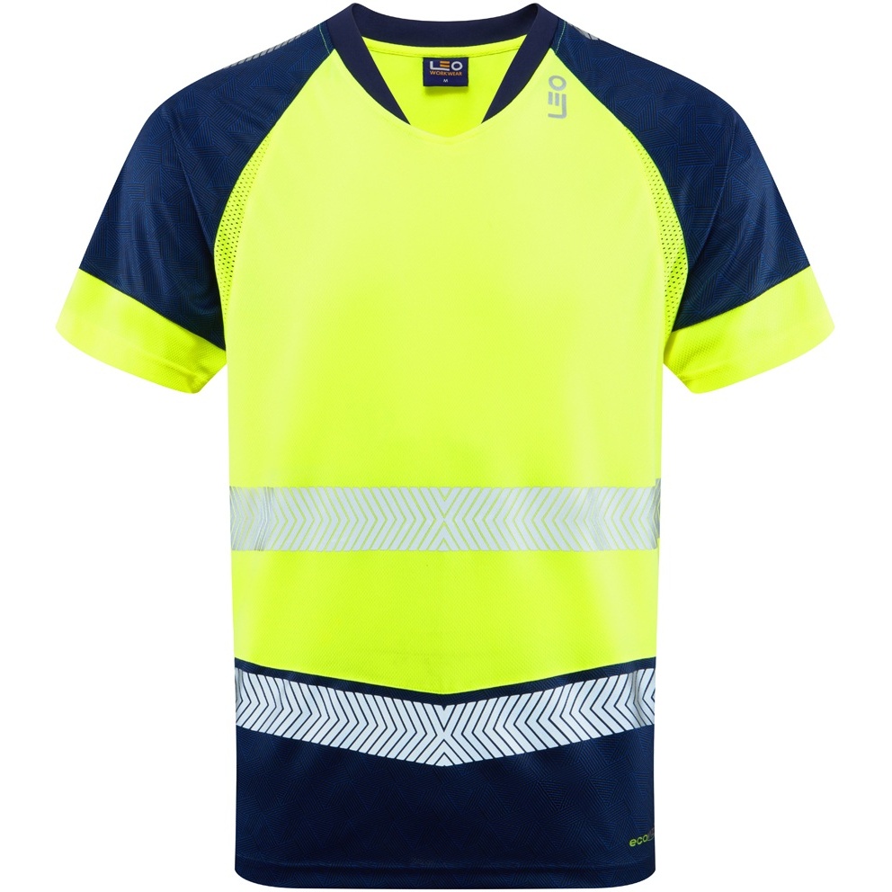 Mérettáblázat - Leo Forda Ecoviz Performance+ Dual Colour T-Shirt Hi-Vis Yellow/Navy Print