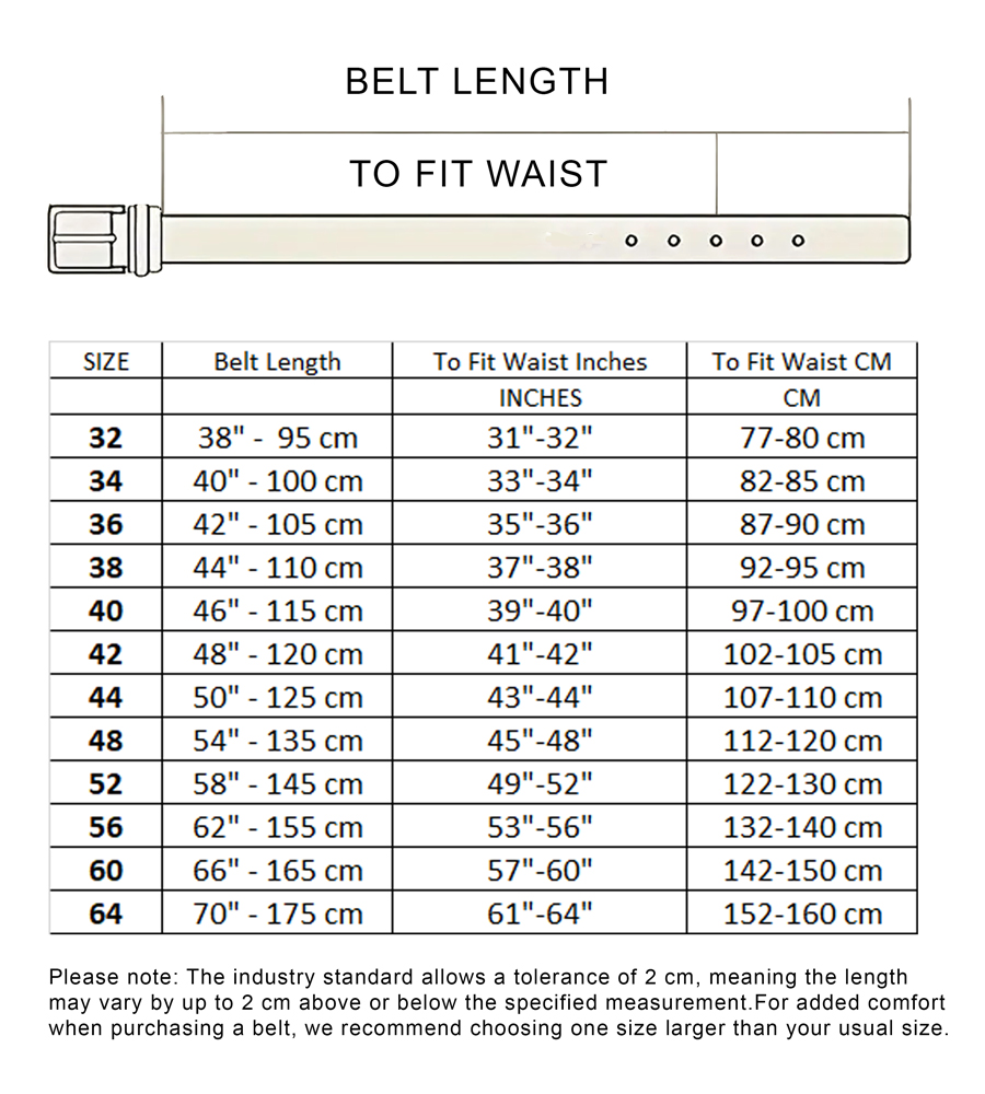 Mérettáblázat - D555 Dylan Tan Bonded Leather Belt