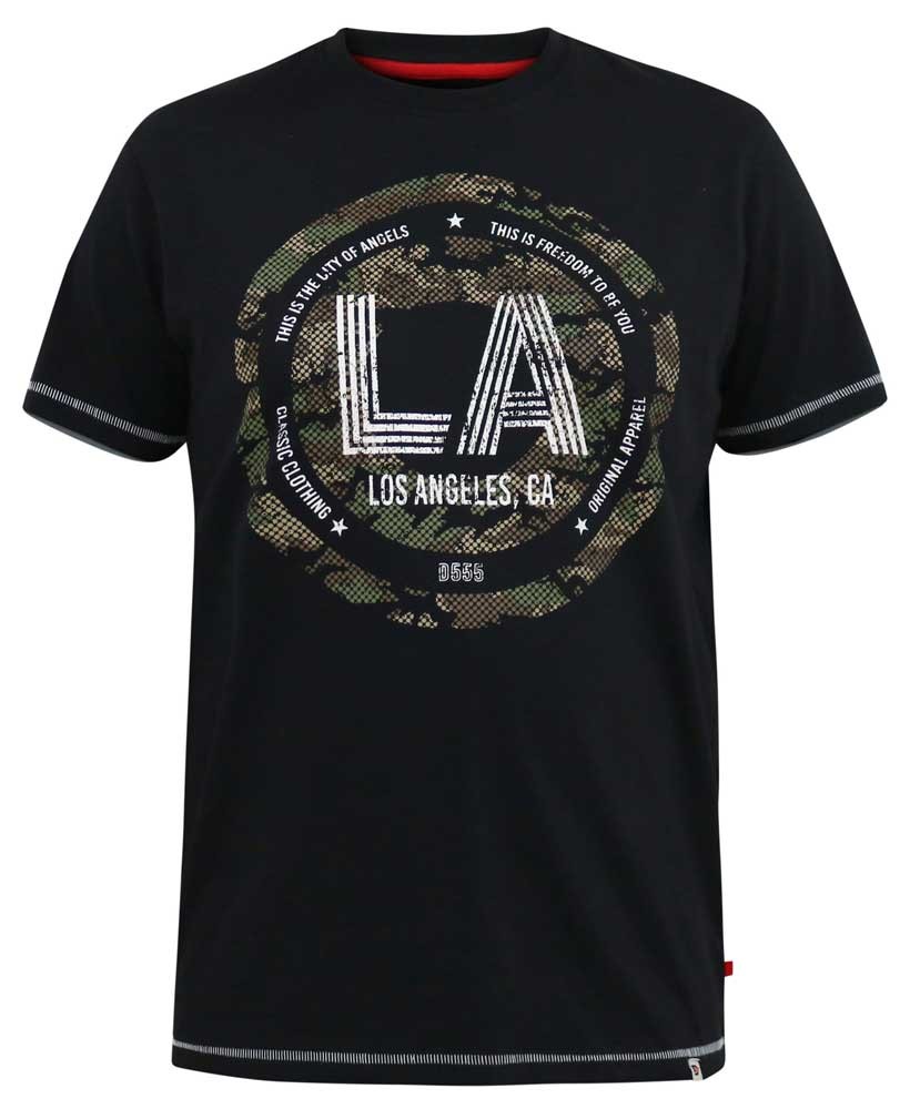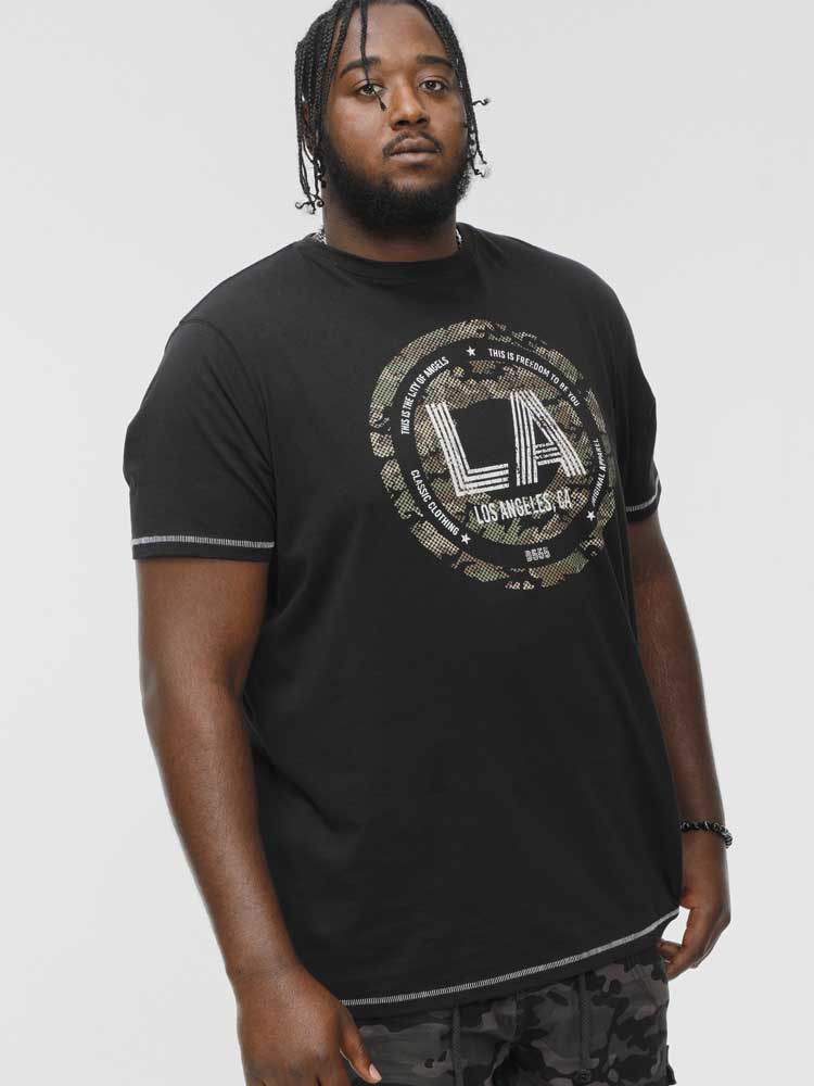 Mérettáblázat - D555 BENNY LA Camo Printed Crew Neck T-Shirt Black