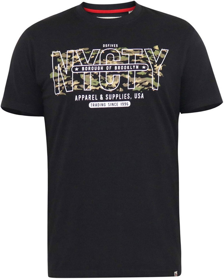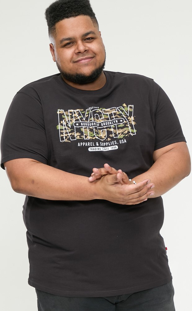 Mérettáblázat - D555 EDWALTON NYCTY Camo Printed Crew Neck T-Shirt Washed Black