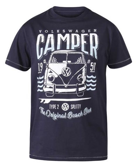 D555 Gorton Official Licensed VW Product Campervan Printed T-Shirt Navy