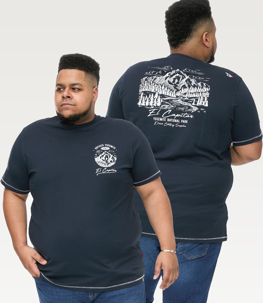 Mérettáblázat - D555 GRAHAM YOSEMITE Chest And Back Printed Crew Neck T-Shirt Navy