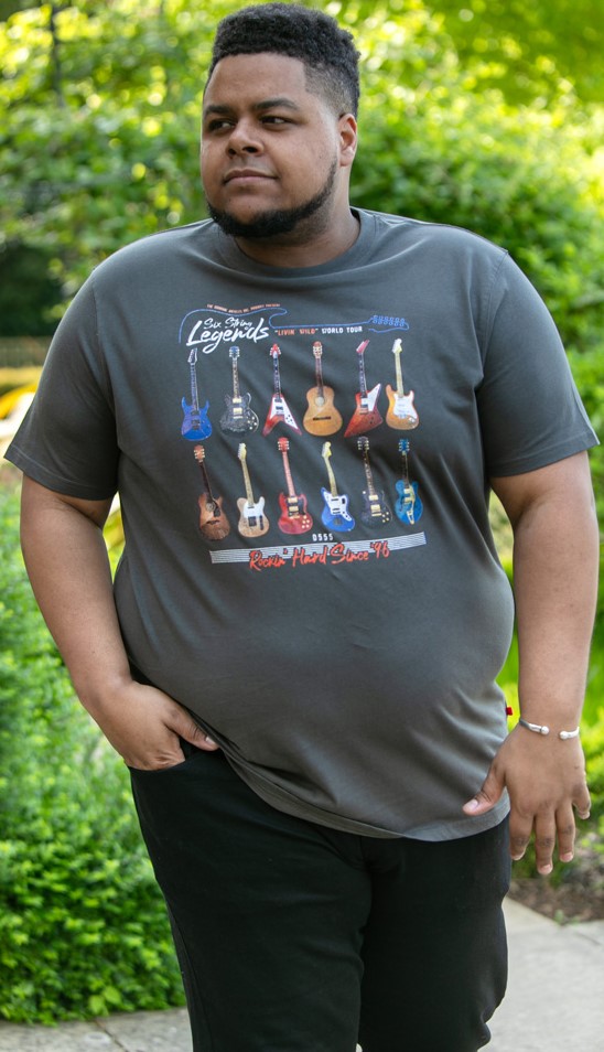 Mérettáblázat - D555 JAIDEN Legends Guitar Printed Crew Neck T-Shirt Khaki