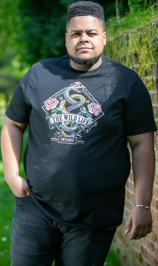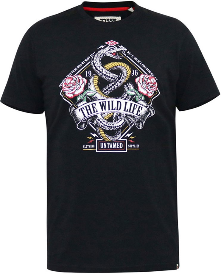 Mérettáblázat - D555 MALCOM Snake And Roses Printed Crew Neck T-Shirt Black