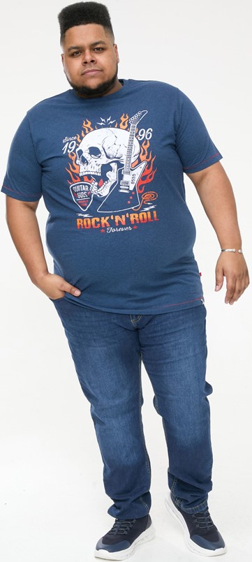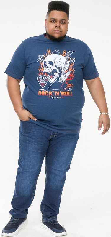Mérettáblázat - D555 NEAL Skull With Flames Printed Crew Neck T-Shirt Navy/Blue Twist