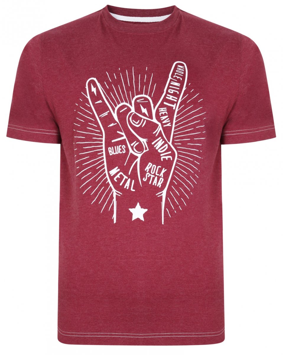 Mérettáblázat - Kam Jeans 5390 Rock Star Print T-Shirt Burgundy