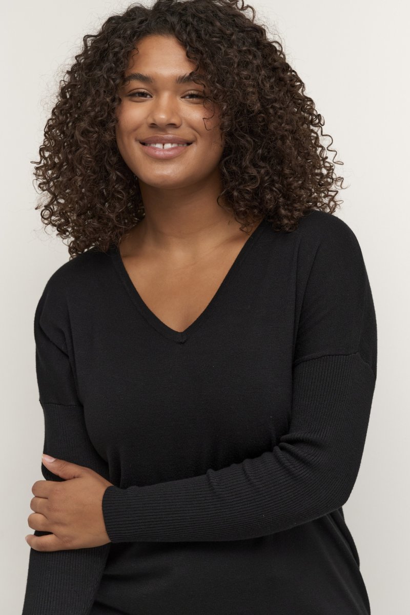Női pulóverElérhető 42–56-os méretekbenA Kaffe Curve márkától80% viszkózból és 20% nylonból készültBő szabásSzín: FeketeKattintson ide a mérettáblázat megjelenítéséhez.