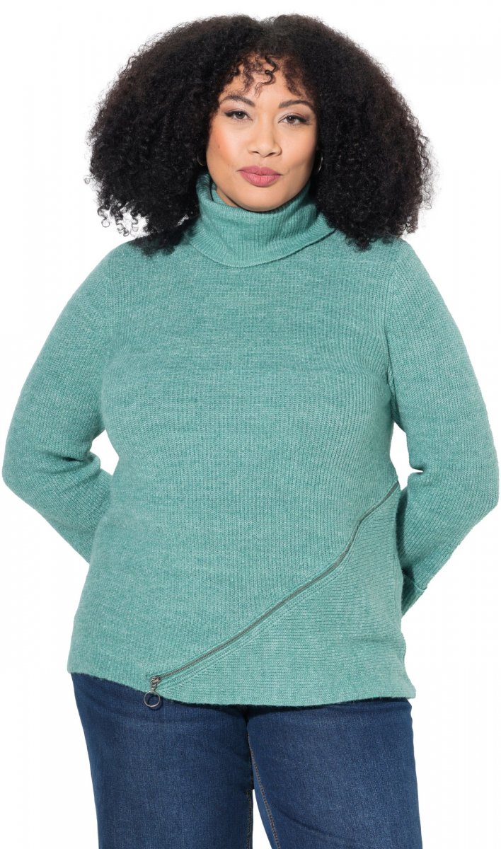 Mérettáblázat - Ulla Popken Asymmetric Zipper Turtleneck Sweater Green