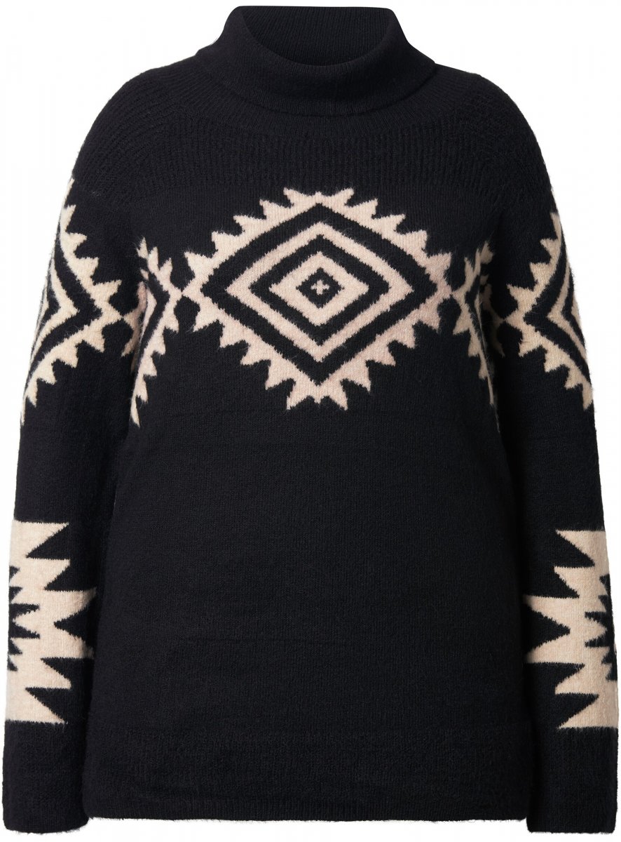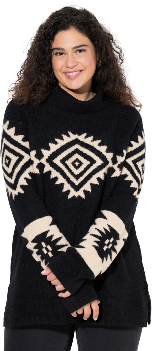 Ulla Popken Aztec Pattern Turtleneck Sweater Black