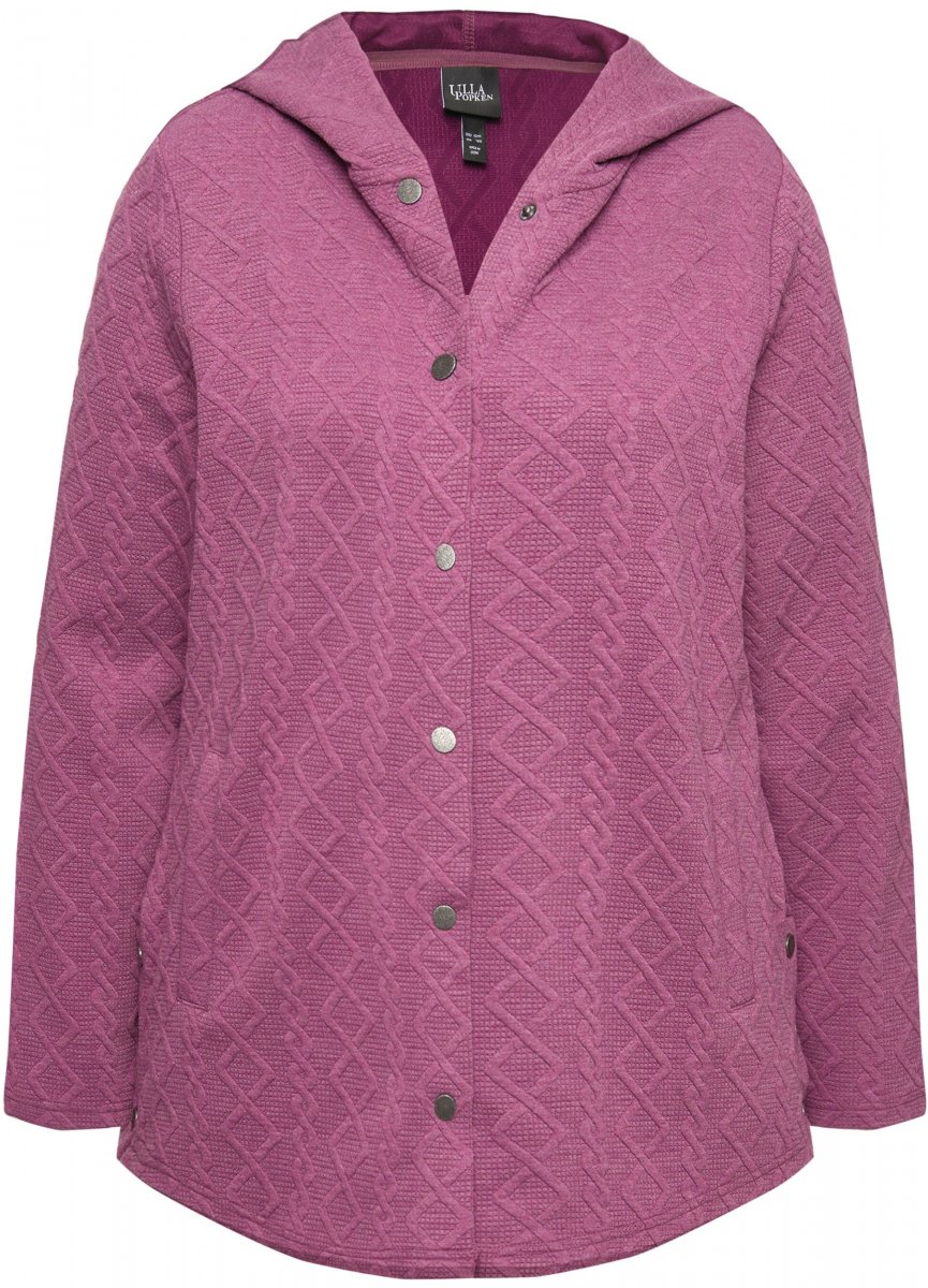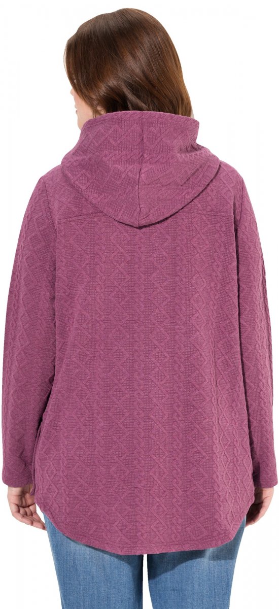 Ulla Popken Cable Knit Long Sleeve Hoodie Berry