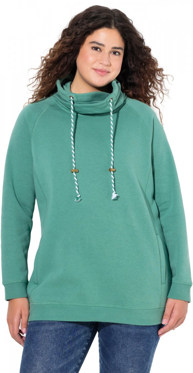Mérettáblázat - Ulla Popken Drawstring Collar Long Sleeve Sweatshirt Green