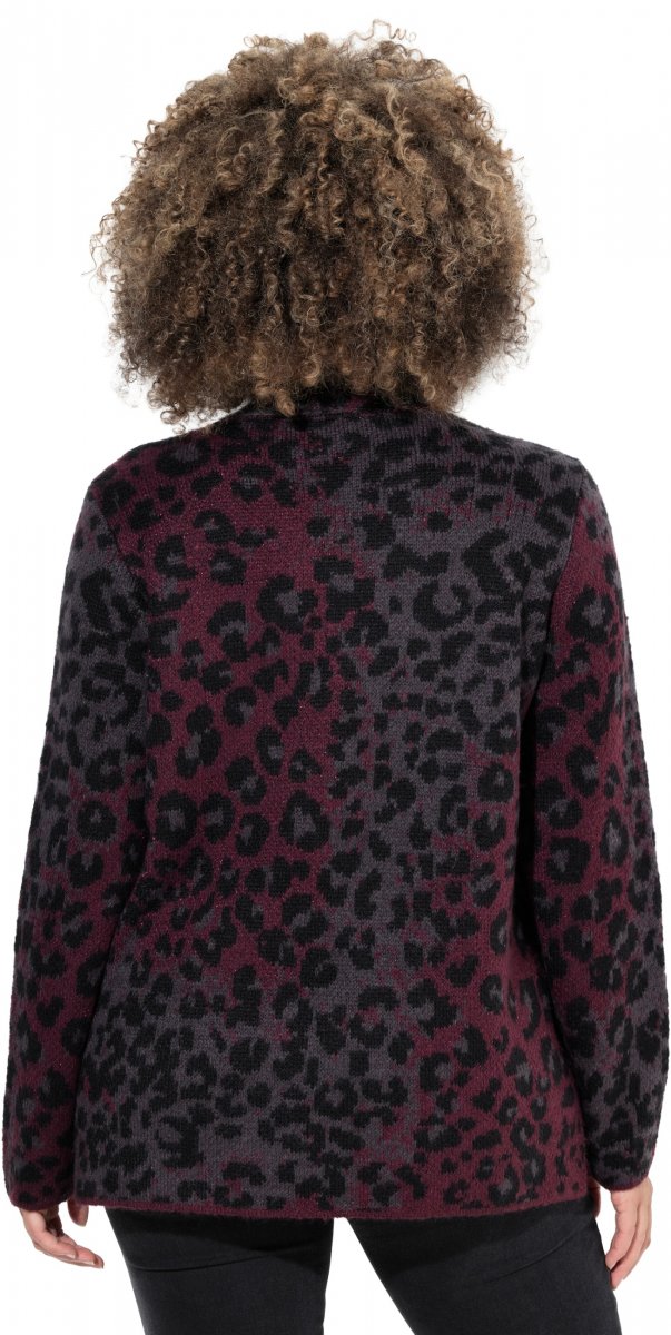 Ulla Popken Leopard Print Scarf Sweater Dark Ruby