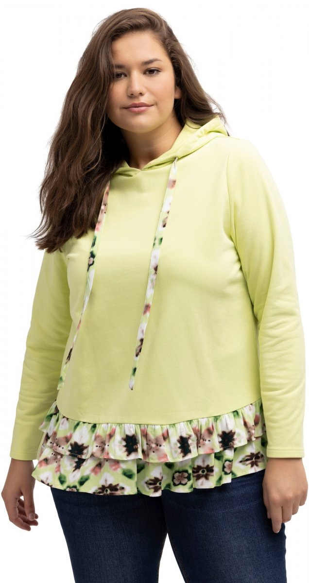 Mérettáblázat - Ulla Popken Ruffle Hem A-line Fit Hooded Sweatshirt Lime Green