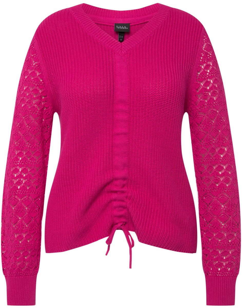 Mérettáblázat - Ulla Popken Shaker Stitch Cropped Gathered Sweater Fuchsia Pink