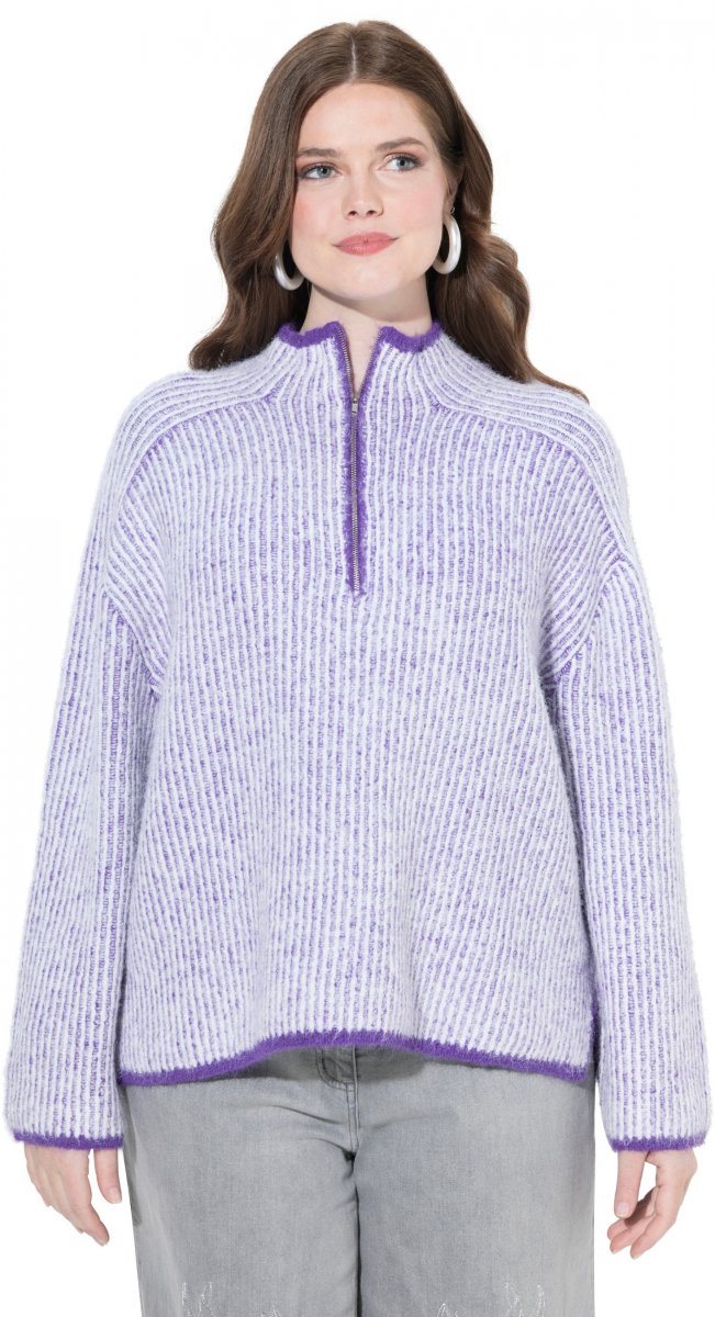 Mérettáblázat - Ulla Popken Striped Knit Long Sleeve Troyer Collar Sweater Purple