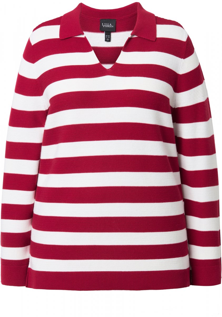 Mérettáblázat - Ulla Popken Striped Polo Collar Long Sleeve Sweater Ruby Red