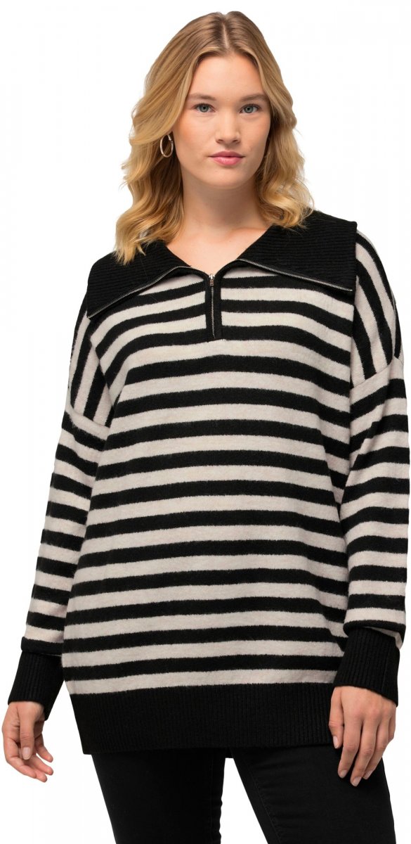 Mérettáblázat - Ulla Popken Striped Troyer Collar Sweater Black