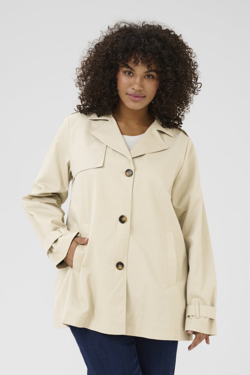 Rövid kabát42–54-es méretekben kaphatóA Kaffe Curve márkától65 % poliészterből és 35 % pamutból készültBő szabásSzín: Bézs