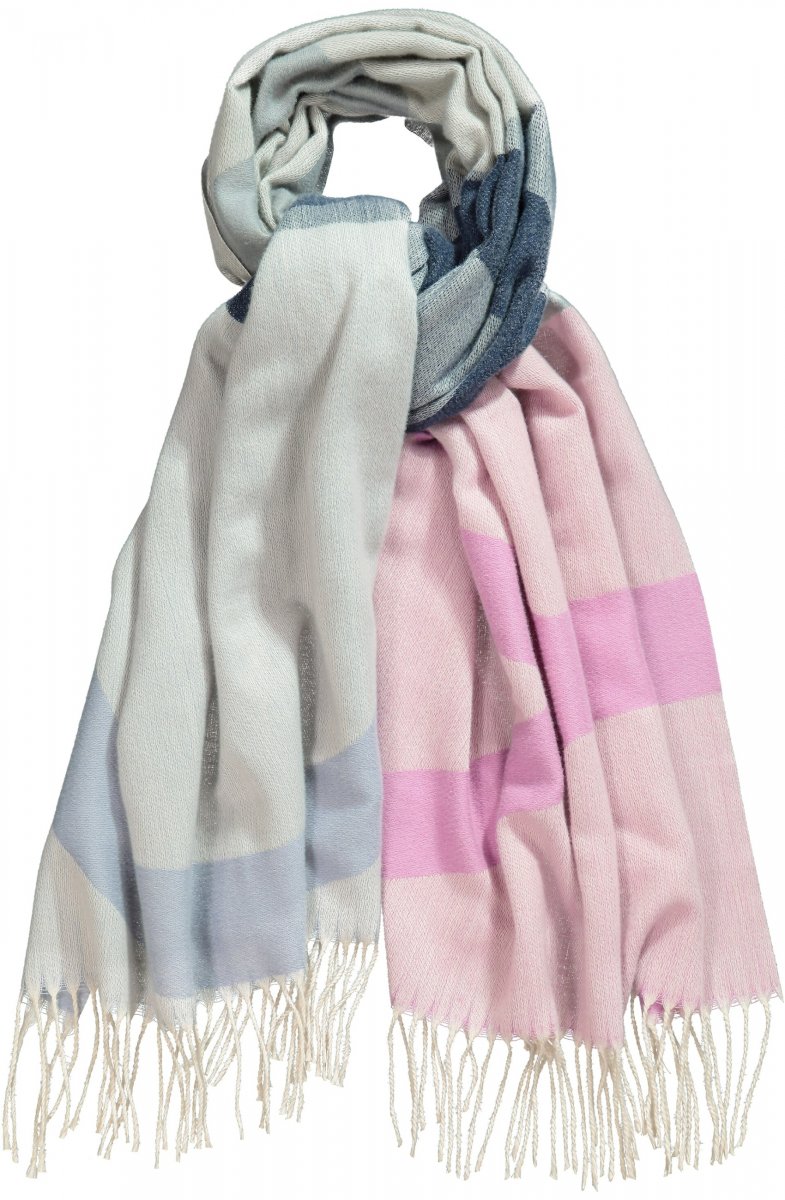 Ulla Popken Cozy Lettering Fringed Scarf Pink and Blue