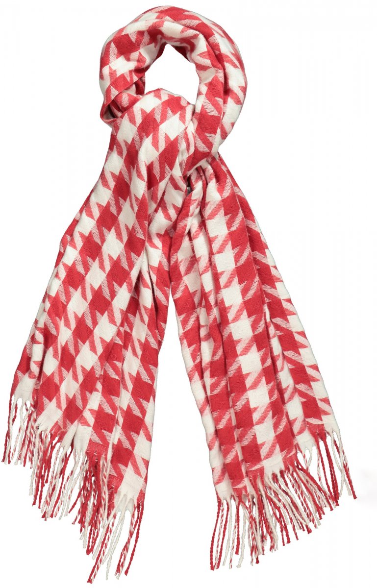 Ulla Popken Houndstooth Fringed Hem Scarf Salsa