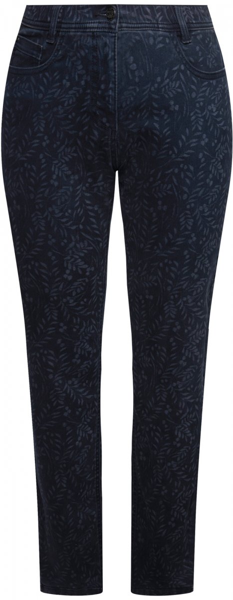 Ulla Popken Leaf Print Boyfriend Jeans Blue