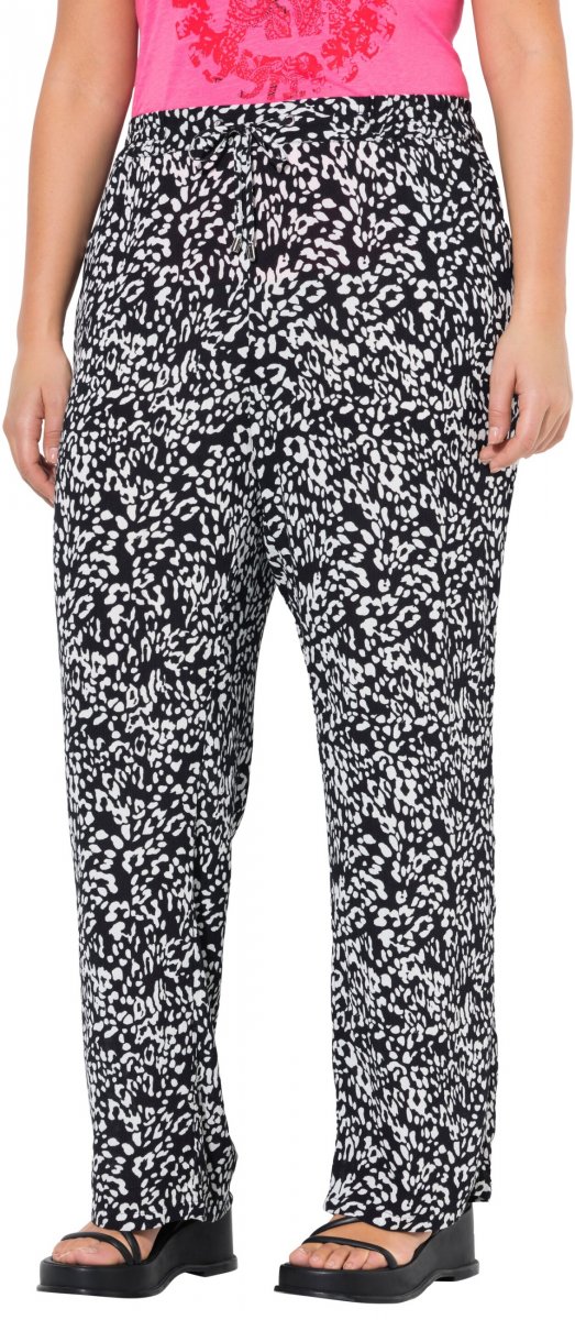 Ulla Popken Leopard Print Elastic Waist Pants Black
