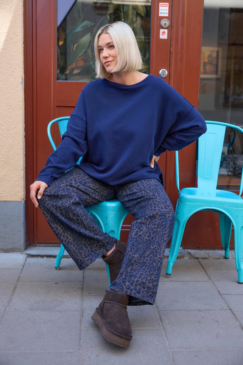 Ulla Popken Leopard Print Stretch Fit Jeans Ink Blue