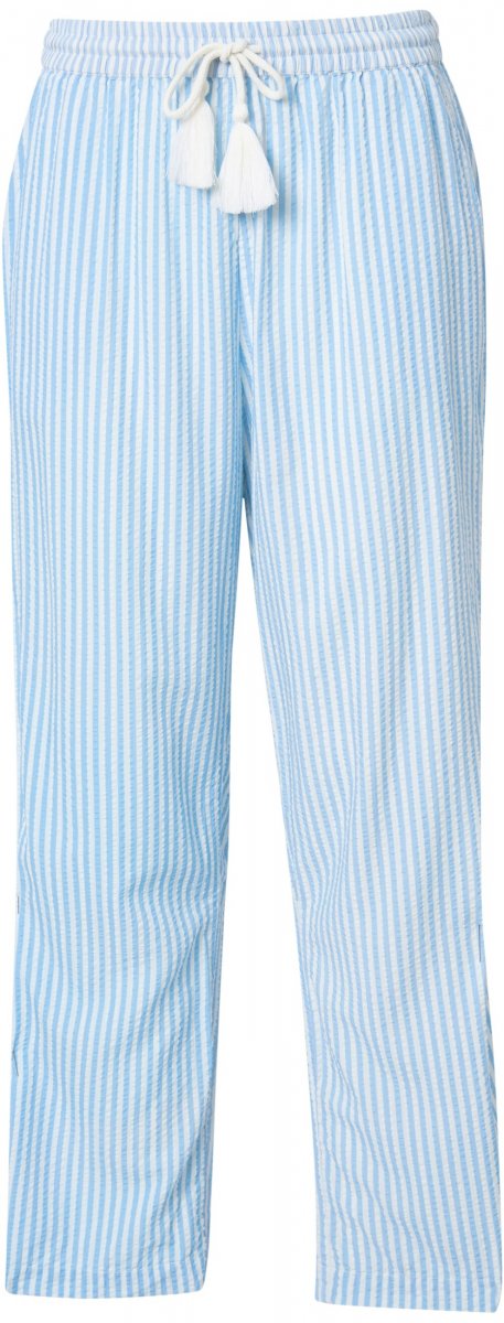 Ulla Popken Seersucker Elastic Waist Pants Blue