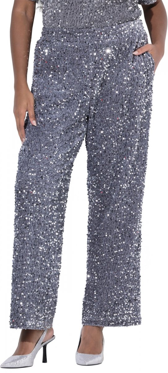 Ulla Popken Sequined Velvet Comfort Waist Pants Grey