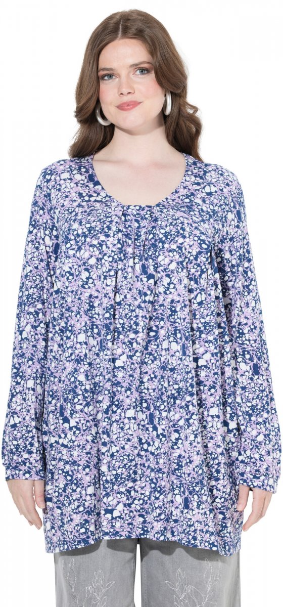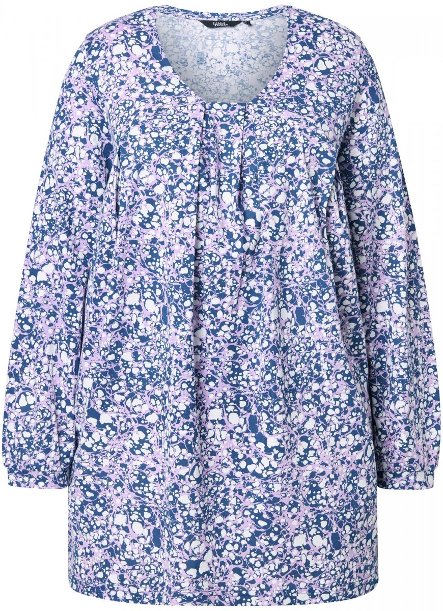 Mérettáblázat - Ulla Popken Allover Printed Pleated Long Sleeve Tee Dark Blue