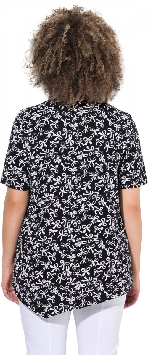 Mérettáblázat - Ulla Popken Bow Print Short Sleeve Pointed Hem Tee Black