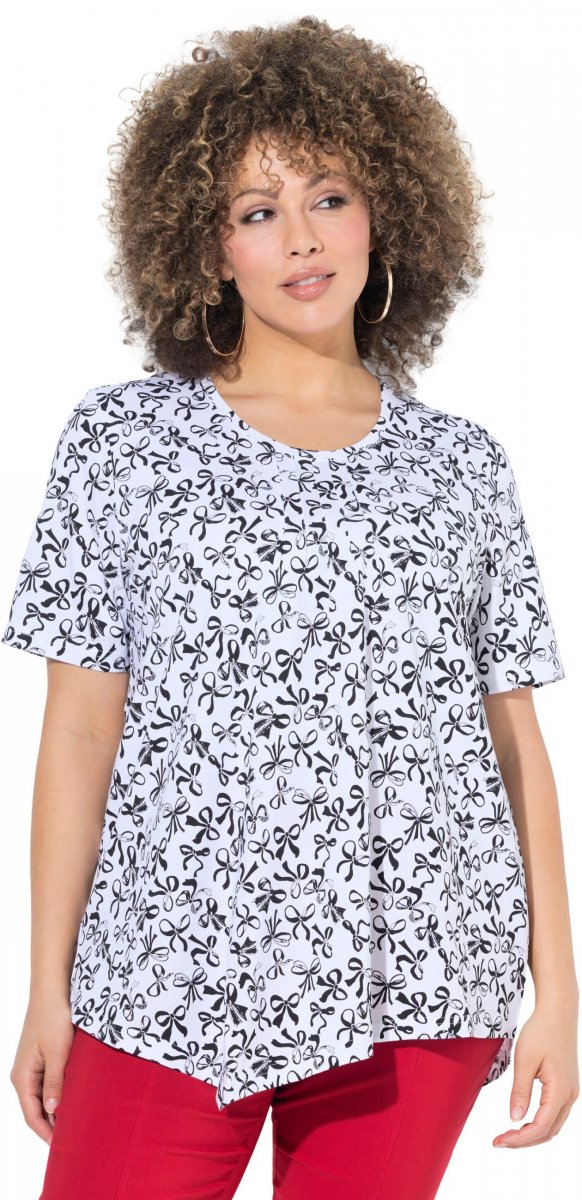Mérettáblázat - Ulla Popken Bow Print Short Sleeve Pointed Hem Tee Snow White
