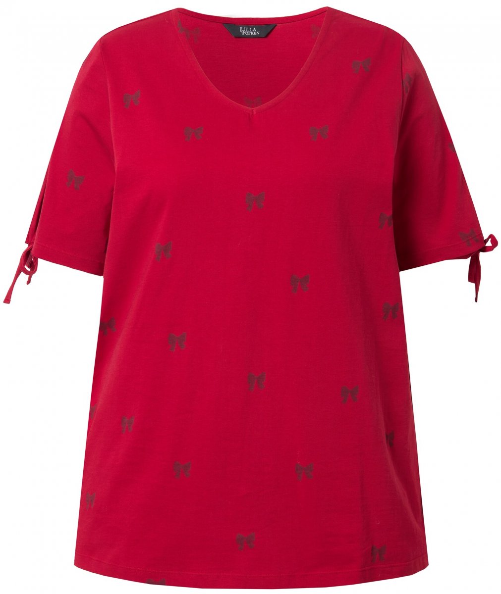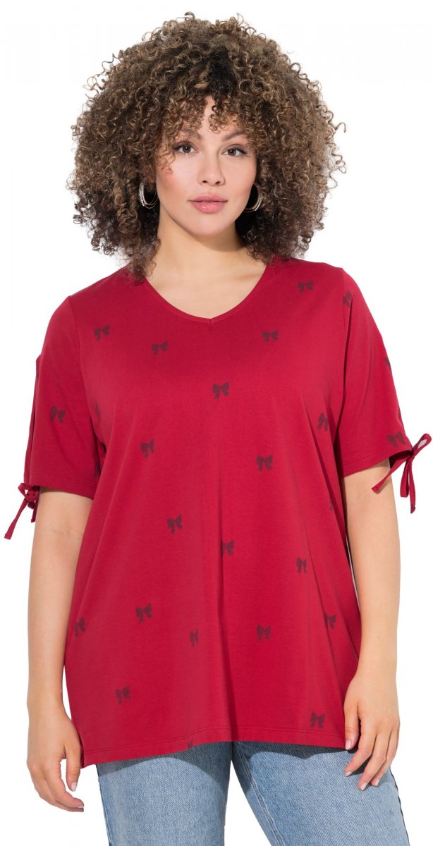 Mérettáblázat - Ulla Popken Bow Print Split Sleeve Tee Ruby Red
