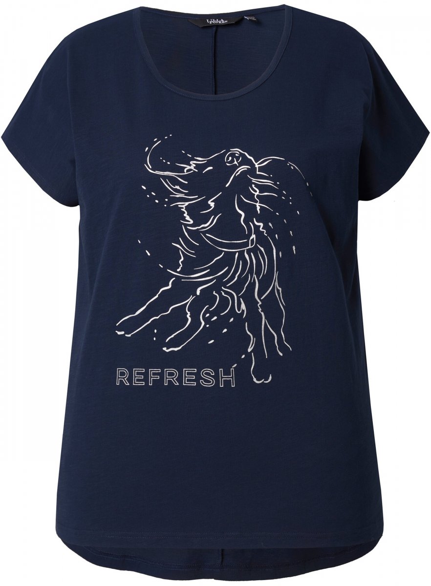 Mérettáblázat - Ulla Popken Metallic Animal Cap Sleeve Graphic Tee Navy