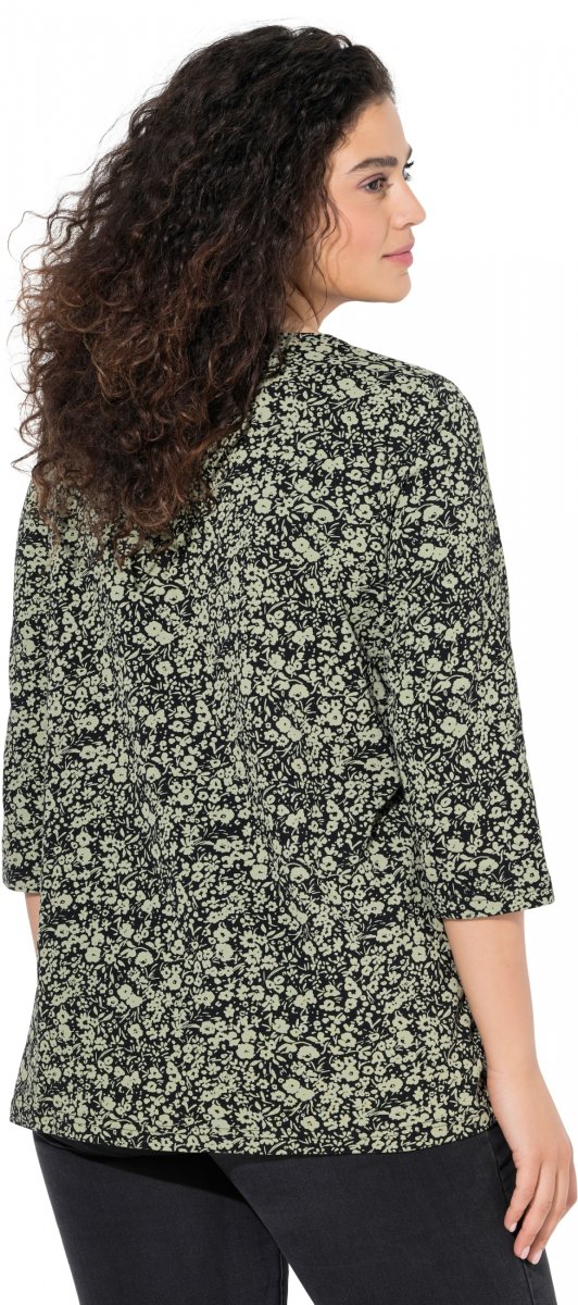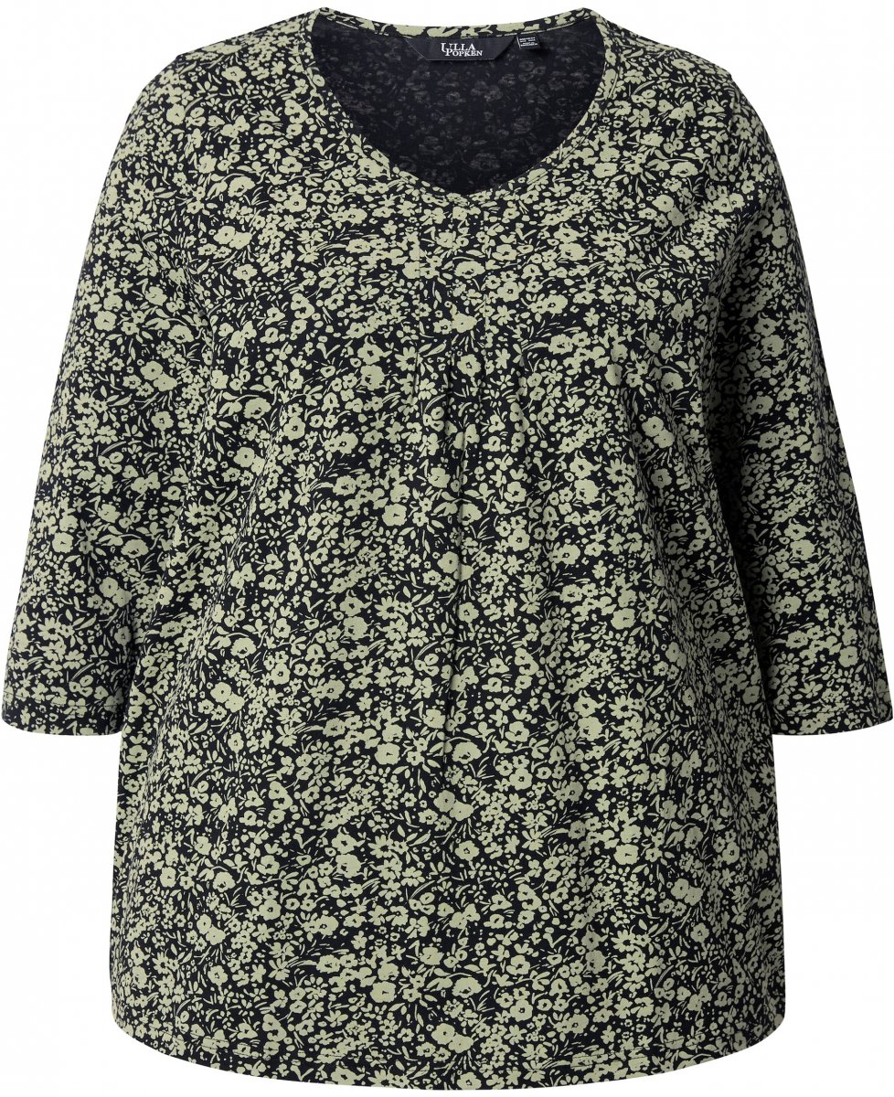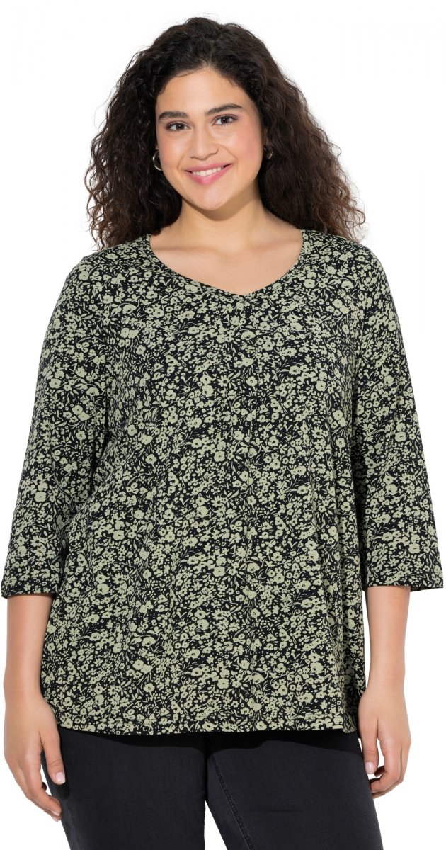 Mérettáblázat - Ulla Popken Pleated Floral Print 3/4 Sleeve Tee Pond Green