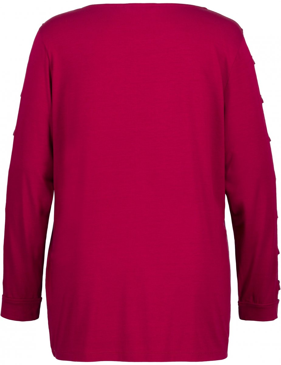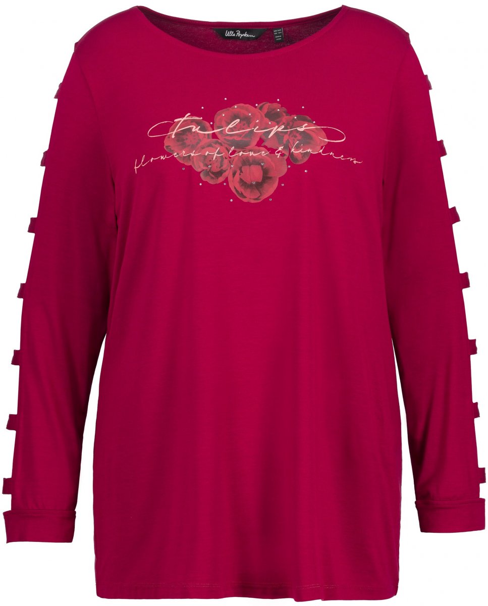 Ulla Popken Rhinestone Accent Statement Cutout Sleeve Stretch Knit Top Wine Red