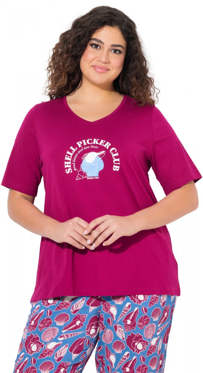 Mérettáblázat - Ulla Popken Shell Picker Club Short Sleeve Graphic Tee Magnolia Red