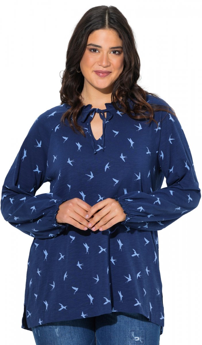 Ulla Popken Swallow Print Long Sleeve Tee Ink Blue