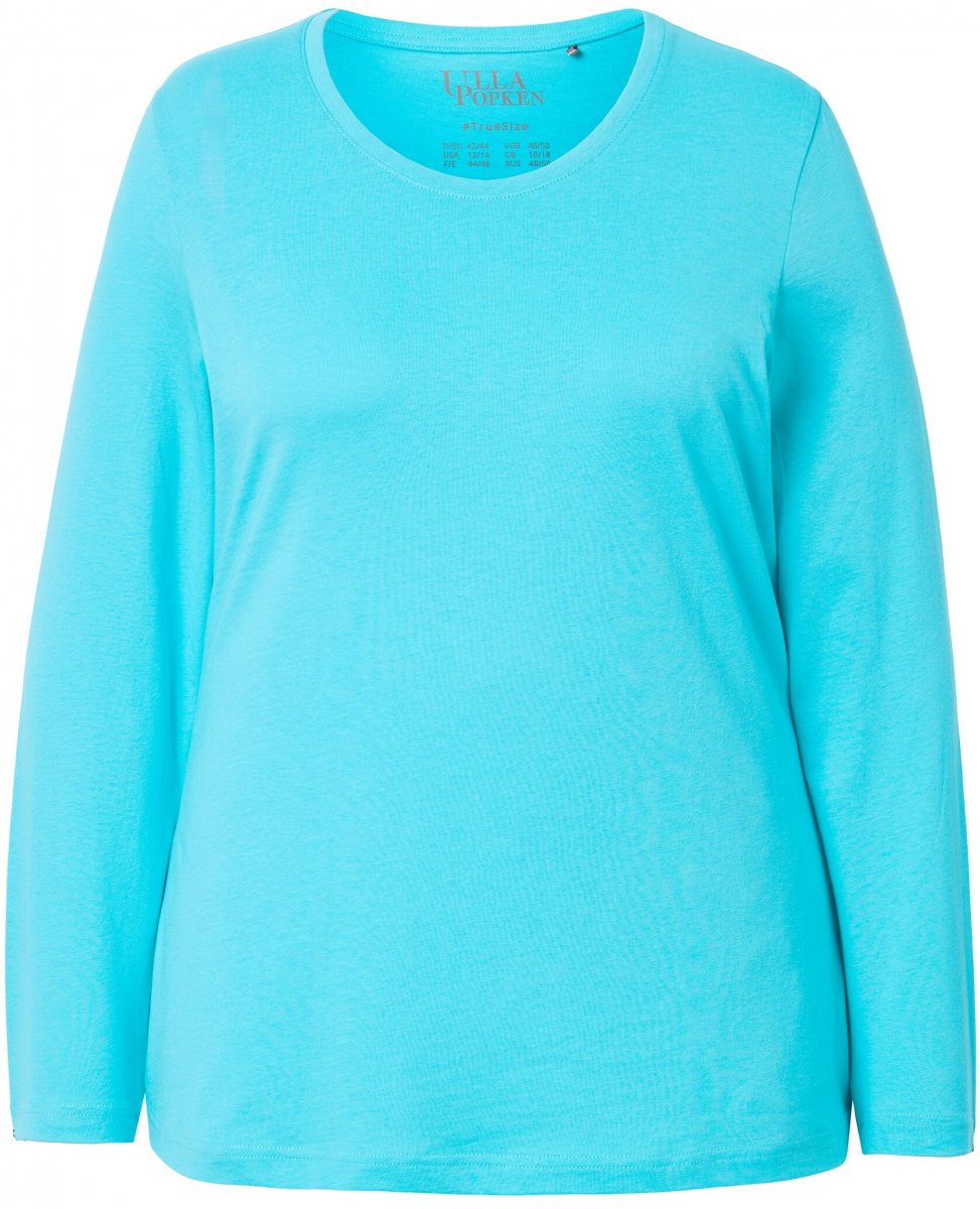 Ulla Popken Basic Round Neck Long Sleeve Slim Fit Cotton Tee Deep Aqua