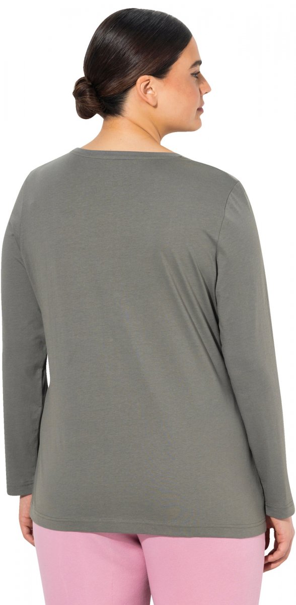 Ulla Popken Basic Round Neck Long Sleeve Slim Fit Cotton Tee Grey