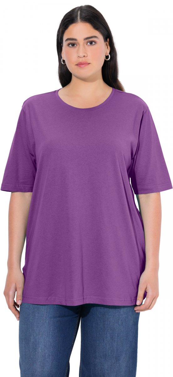 Ulla Popken Basic Round Neck Short Sleeve Relaxed Fit T-Shirt Purple