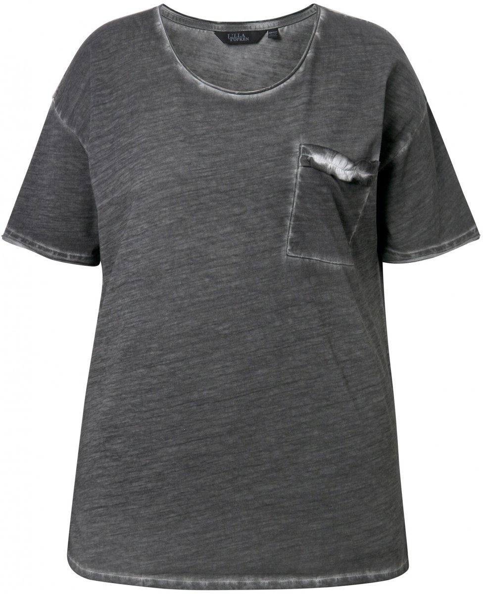 Ulla Popken Cold Dye Ruffle Edge Pocket Tee Graphite Grey