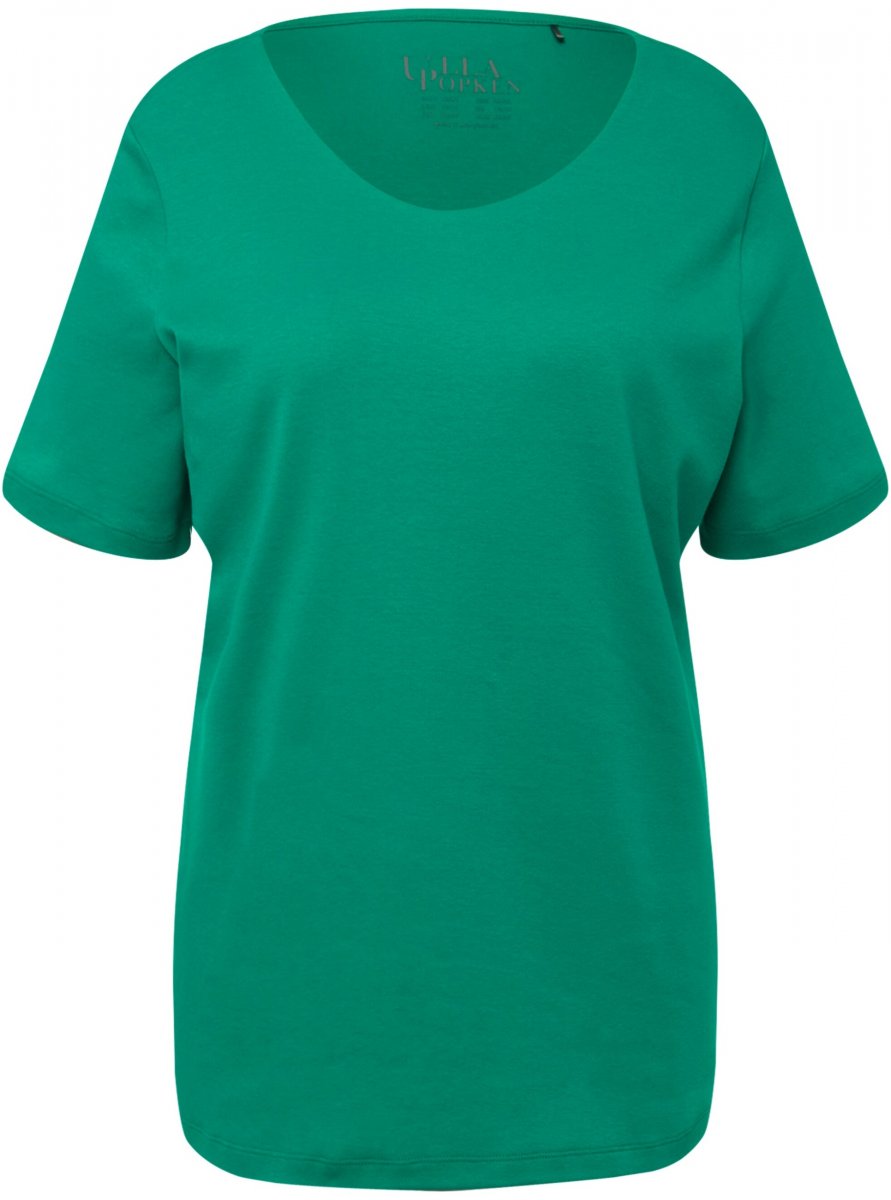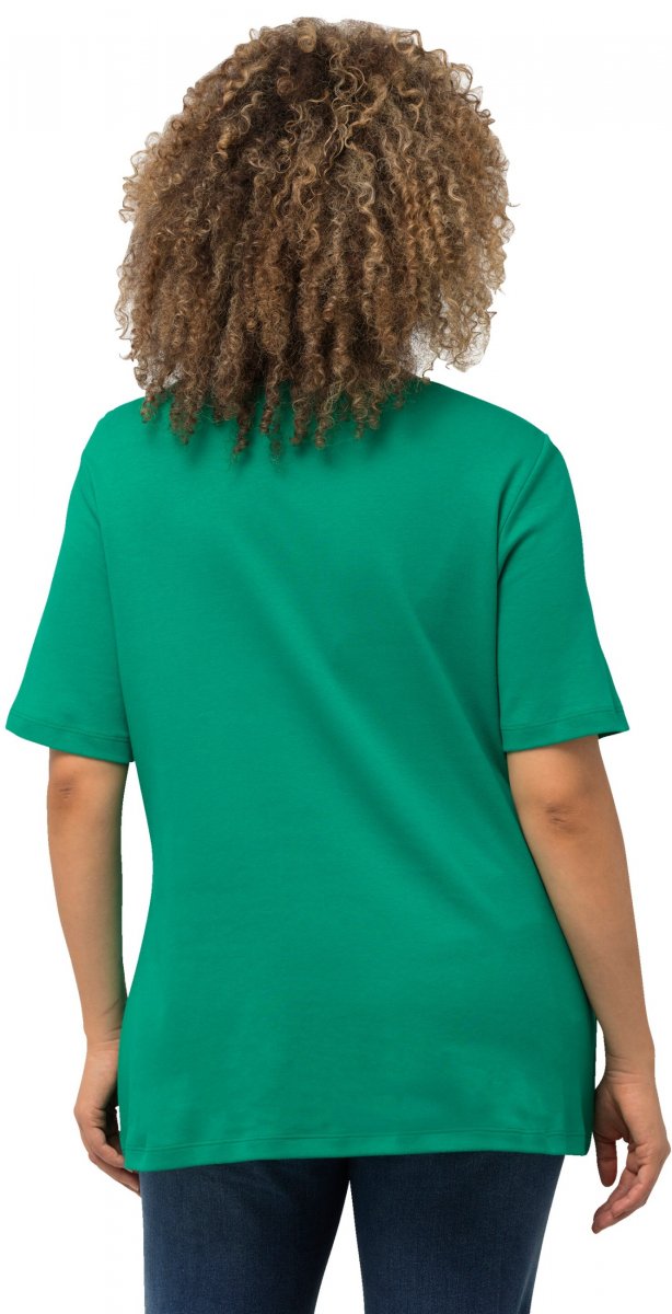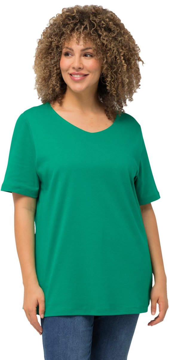 Ulla Popken Double Layer Rounded V-Neck Slim Fit Tee Emerald