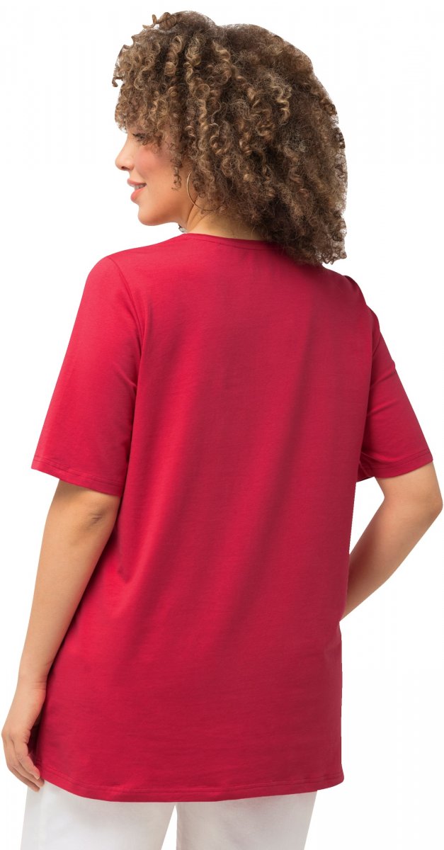 Ulla Popken Essential Round Neck Stretch Tee Dark Pink